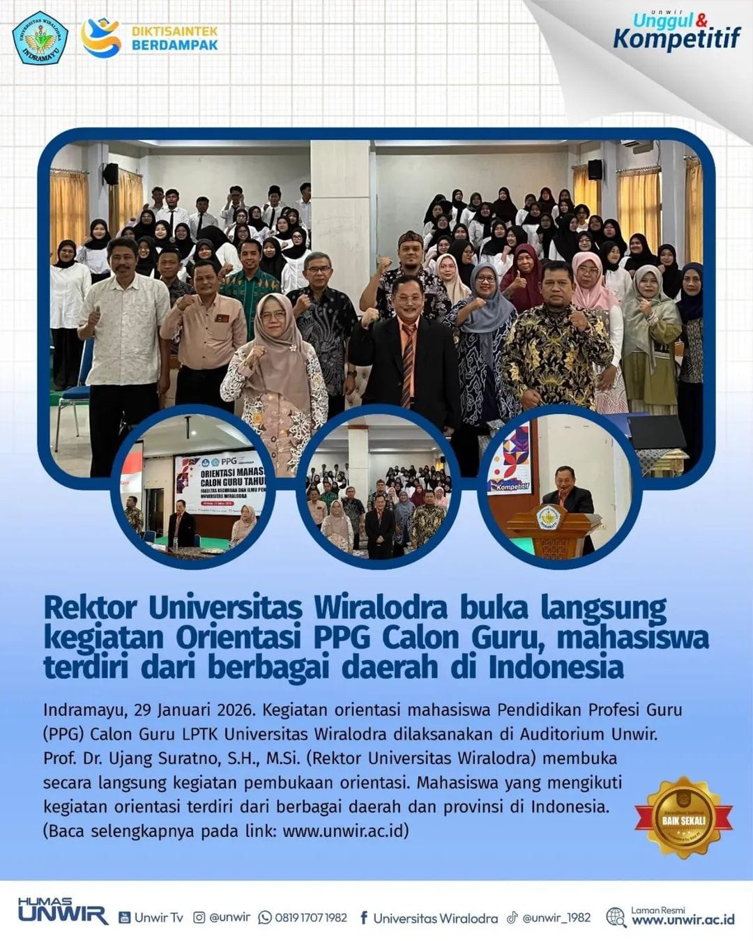 Kegiatan Orientasi PPG Calon Guru tahun 2026 ini merupakan langkah awal bagi Mahasiswa Calon Guru 2026 yang tergabung dalam LPTK Universitas Wiralodra sebelum melaksanakan pembelajaran di Prodi Pendidikan Profesi Guru.